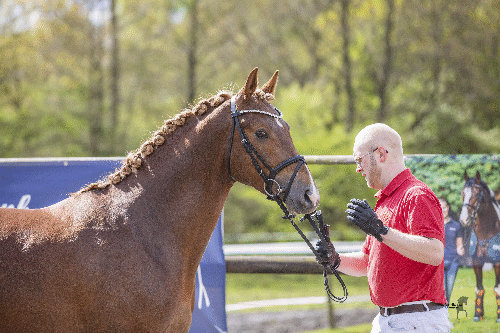 Dieser formschöne Fuchshengst besticht durch sein imposantes Auftreten mit viel Chic und einem eleganten Exterieur. Ebenso fesselnd sind seine überdurchschnittlich guten Grundgangarten. Seine mit viel Kraft, Schwung und Elastizität ausgestatteten Trabbewegungen lassen das Auge nicht von Ihm weichen. Auch im Galopp, der stets bergauf aus der Hinterhand gesprungen wird, weiss er zu überzeugen. Aufgrund seiner Größe von 156cm und seiner äußerst eleganten Aufmachung, ist er der ideale Veredeler für die Reitponyzucht.